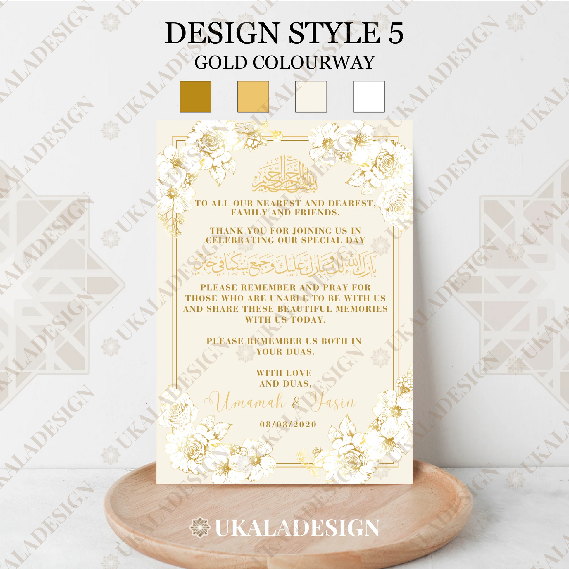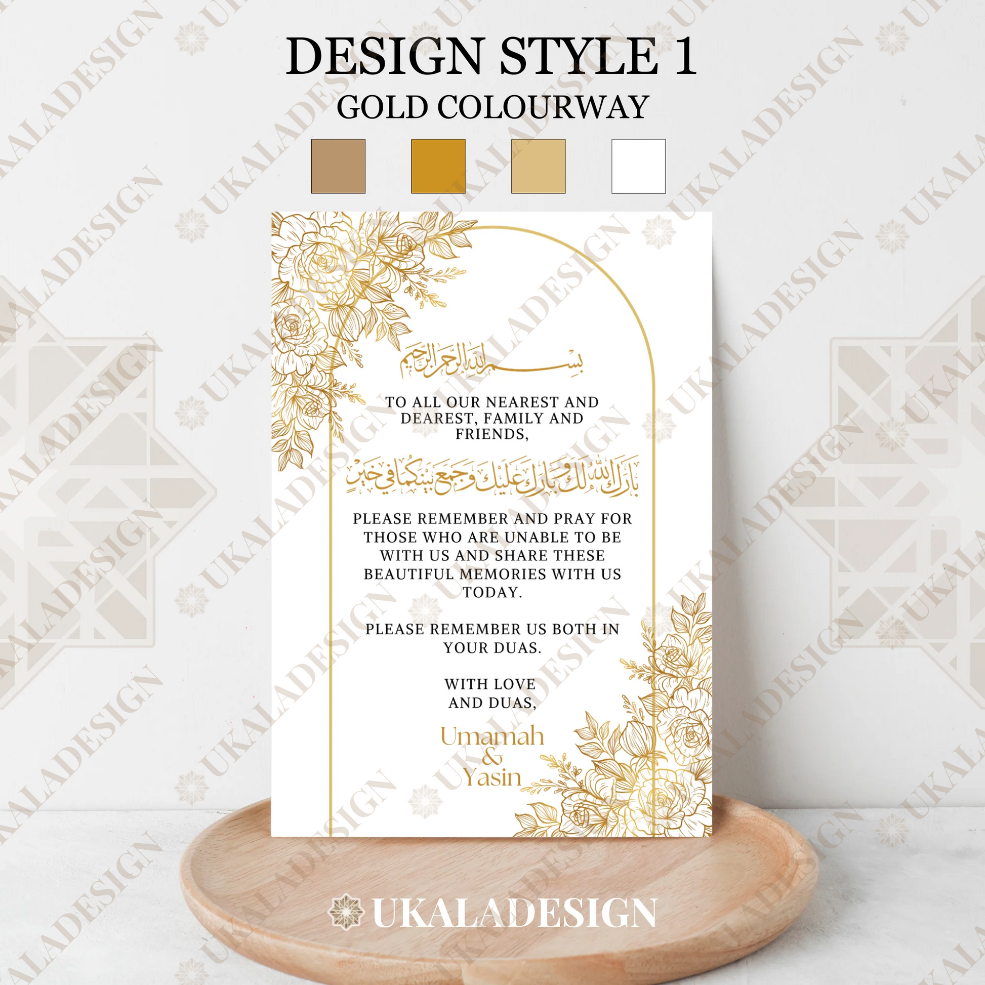 Our Dua/Favour Wedding Cards add an elegant and meaningful touch to your Nikaah, Walima, Wedding or any other occasion day, serving as both a beautiful decoration and a memorable keepsake for your guests.