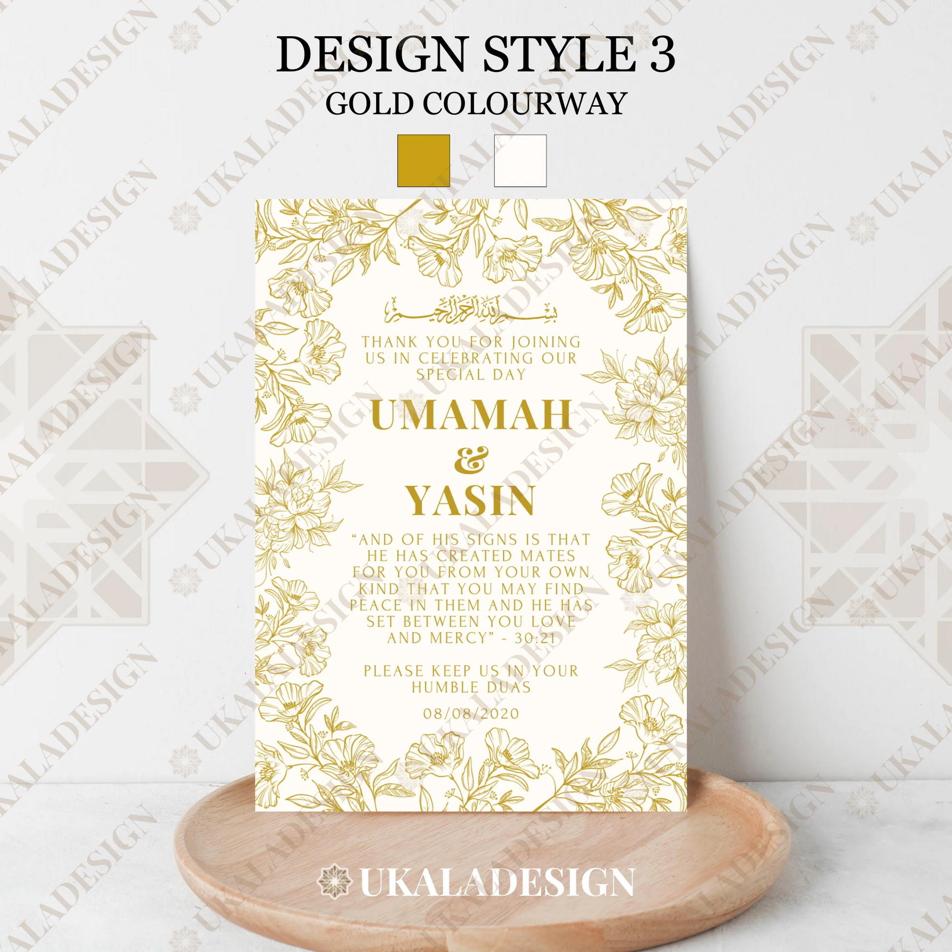 The cards are printed using the same high-quality size and format we use for our Nikah Certificates and Wedding Invitations - 350gsm silk card, ensuring a luxurious and durable finish.